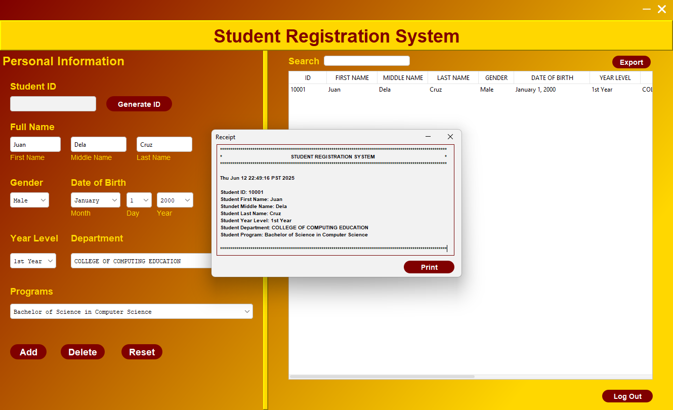 This was a university project where I built a desktop application to manage student enrollments and course data. I focused on creating a clean, intuitive interface with JavaFX and connected it to a MySQL database for persistent record-keeping. My role involved frontend development, debugging, and thorough testing to ensure the system was reliable for administrative use.